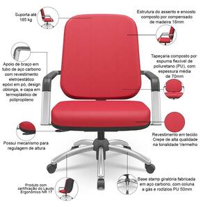 ColorSimple: Vermelho | Com aro para pés: Não | Material: Base Giratória de Aço Carbono, Espuma Flexível Poliuretano, Crepe | Materiais do aro para pés: na | OriginState: PR | ProductWeight: 25 kg | Tipo de cadeira de escritório: Cadeira Giratória Operativa Plus Size | ColorSupplier: Vermelho | OriginCountry: Brasil | Model: Magno | SizeDescription: Altura: 115 cm x Largura: 71 cm x Profundidade: 73 cm | Formato de venda: Unitário | ColorFamily: Vermelho | Requer montagem: Sim | Material do estofamento: Crepe | Modelo: Magno | Modelo detalhado: Magno Giratória Base Cromada | Color: Vermelho | MaterialFamily: Crepe | Com apoio de braços: Sim | Cor: Vermelho | Número de registrocertificação INMETRO: ABNT NBR 13962, NR 17 | Com rodas: Sim | SupplierSimpleName: Cadeira de Escritório Giratória com Braço Cromada Magno P03 Crepe Vermelho - Lyam Decor | ProductHeight: 115 cm | ProductLength: 73 cm | ProductWidth: 71 cm | ProductWarranty: 90 dias após o recebimento do produto | ProductInstructions: Produto para uso em ambiente interno, nao devendo ficar exposto ao sol, calor e umidade excessivos. | ProductContents: 01 Cadeira Giratória, manual de instruções