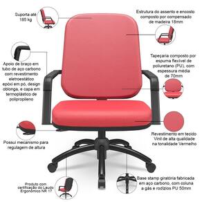 Formato de venda: Unitário | Modelo: Magno | SupplierSimpleName: Cadeira de Escritório Giratória com Braço Preta Magno P03 Vinil Vermelho - Lyam Decor | ProductLength: 73 cm | ProductContents: 01 Cadeira Giratória, manual de instruções | Cor: Vermelho | Material do estofamento: Vinil | ColorSimple: Vermelho | Color: Vermelho | Número de registrocertificação INMETRO: ABNT NBR 13962, NR 17 | Modelo detalhado: Magno Giratória Base Preta | ColorFamily: Vermelho | Com aro para pés: Não | Com rodas: Sim | SizeDescription: Altura: 115 cm x Largura: 71 cm x Profundidade: 73 cm | Requer montagem: Sim | Material: Base Giratória de Aço Carbono, Espuma Flexível Poliuretano, Vinil | ProductWarranty: 90 dias após o recebimento do produto | ProductWeight: 25 kg | ProductInstructions: Produto para uso em ambiente interno, nao devendo ficar exposto ao sol, calor e umidade excessivos. | Tipo de cadeira de escritório: Cadeira Giratória Operativa Plus Size | Com apoio de braços: Sim | OriginCountry: Brasil | Model: Magno | MaterialFamily: Vinil | OriginState: PR | Materiais do aro para pés: na | ColorSupplier: Vermelho | ProductWidth: 71 cm | ProductHeight: 115 cm