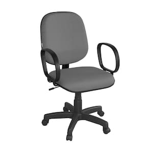 Base giratória sem relax e regulagem de altura com sistema a gás. Assento e encosto injetado e anatômico e tapeçado em tecido J. Serrano. Base e Braço na cor preta.