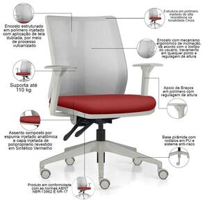 Color: CinzaVermelho | ColorFamily: Cinza | ColorSimple: Cinza | ColorSupplier: CinzaVermelho | Com apoio de braços: Sim | Com aro para pés: Não | Com rodas: Sim | Cor: CinzaVermelho | Formato de venda: Unitário | Materiais do aro para pés: na | Material: Polímero injetado, espuma injetada, tela dublada vulcanizada, rodízios em PU, revestimento em Sintét | Material do estofamento: Espuma Injetada | MaterialFamily: Polímero | Model: Flow Diretor | Modelo: Flow Diretor | Modelo detalhado: Flow Diretor | OriginCountry: Brasil | OriginState: PR | ProductContents: 01 Cadeira de Escritório | ProductHeight: 81 cm | ProductInstructions: Produto para uso em ambiente interno, nao devendo ficar exposto ao sol, calor e umidade excessivos. | ProductLength: 71 cm | ProductWarranty: 90 dias após o recebimento do produto | ProductWeight: 13 kg | ProductWidth: 71 cm | Requer montagem: Sim | SizeDescription: Altura: 81 cm x Largura: 71 cm x Profundidade: 71 cm | SupplierSimpleName: Cadeira de Escritório Giratória Diretor Flow F02 Base Cinza Sintético Vermelho - Lyam Decor | Tipo de cadeira de escritório: Diretor Giratória