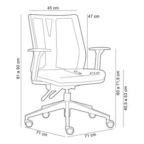 Altura do chão aos braços: 60 a 71,5 cm