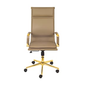 Cadeira De Escritório Giratoria Eames Soft Caramelo - Alta | Dourado Brilho Especificações: Cadeira Estilo Presidente com encosto alto Base giratória em aço cromado e pigmentado na cor Desejada com cinco rodizios Função de ajuste de altura por pistão a gás Sistema de reclinamento tipo relax com trava no ponto inicial e ajuste de pressão para maior conforto Encosto com estrutura em aço cromado com revestimento em couro PU Assento com estrutura em aço cromado com revestimento em couro PU Braços em aço cromado com revestimento em couro PU removível Espuma com densidade controlada Peso máximo recomendado: 120 Kg Necessita montagem. Medidas: Encosto Largura: 43cm Altura: 61cm Altura máxima até o chão: 110cm Altura mínima até o chão: 102cm Assento Profundidade: 48cm Largura: 48cm Altura máxima do chão até o assento: 52cm Altura mínima do chão até o assento: 40cm Braços Comprimento: 38cm Largura: 4,5cm Altura máxima até o chão: 80cm Altura mínima até o chão: 72cm Itens inclusos 01 Cadeira desmontada Marca: Não Informado