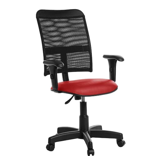 Cadeira De Escritório Giratória Tela Com Braço Rce Vermelho Ideal para ambientes como: escritórios, corporativo, home office, consultórios, etc. Especificações: Revestimento: Cor do revestimento: vermelho; Tipo de revestimento: c0uro ecológico; Malha: 50% poliéster e 50% algodão; Composição superficial: 93,2% pvc e 6,8% poliuretano; Espessura aproximada: 0,12 cm +/-11% ; Detalhamento do assento: Espuma injetada de poliuretano; Largura 46 cm x espessura 5 cm x profundidade 42 cm; Detalhamento do encosto: Estrutura em aço preta revestida com tela mesh; Largura 45 cm x espessura 2 cm x altura 54 cm; Componentes da base giratória: Flange em aço preta; Pistão a gás preto, permite regulagem da altura; Estrela em aço com capa preta; Rodízios em nylon; Base possui raio externo de 28,5 cm, raio útil de 28 cm; Parafusos philips para montagem; Dimensões e peso montado: Altura do assento referente ao piso, mínima 42 cm, máxima 53 cm; Altura do topo do braço referente ao piso, mínima 59 cm, máxima 71 cm; Peso líquido aproximado: 11 kg; Peso bruto aproximado: 11,5 kg; Peso suportado: 110 kg uniformemente distribuídos; Dimensões da caixa: Largura 60 cm x profundidade 60 cm x altura 20 cm; Componentes inclusos: 01 assento executivo; 01 encosto em tela mesh; 01 suporte de encosto com capa preto; 01 flange em aço preta; 01 pistão com capa preta; 01 estrela em aço com capa preta; 05 rodízios em nylon preto; 02 braços reguláveis pretos; Parafusos para montagem philips; Manual de montagem. Montagem: A montagem deve ser realizada pelo cliente seguindo o manual de montagem. : 180 dias contra defeitos de fabricação, previstos em lei; Obs: Pode haver variação de tonalidade referente ao lote do revestimento conforme a resolução de computadores e smartfones.