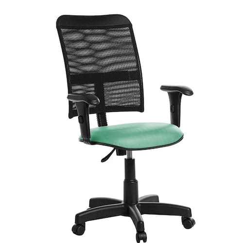 Cadeira de escritório giratória tela com braço rv:turquesa Ideal para ambientes como: escritórios, corporativo, home office, consultórios, etc. Especificações: Revestimento: Cor do revestimento: turquesa; Tipo de revestimento: viena; Malha: 67% poliéster e 33% algodão; Material: vinil e c0urvin; Composição química: 13,8% de malha e 86,2% resina de vinila plastificada; Espessura aproximada: 0,09 cm +/-11% ; Detalhamento do assento: Espuma injetada de poliuretano; Largura 46 cm x espessura 5 cm x profundidade 42 cm; Detalhamento do encosto: Estrutura em aço preta revestida com tela mesh; Largura 45 cm x espessura 2 cm x altura 54 cm; Componentes da base giratória: Flange em aço preta; Pistão a gás preto, permite regulagem da altura; Estrela em aço com capa preta; Rodízios em nylon; Base possui raio externo de 28,5 cm, raio útil de 28 cm; Parafusos philips para montagem; Dimensões e peso montado: Altura do assento referente ao piso, mínima 42 cm, máxima 53 cm; Altura do topo do braço referente ao piso, mínima 59 cm, máxima 71 cm; Peso líquido aproximado: 11 kg; Peso bruto aproximado: 11,5 kg; Peso suportado: 110 kg uniformemente distribuídos; Dimensões da caixa: Largura 60 cm x profundidade 60 cm x altura 20 cm; Componentes inclusos: 01 assento executivo; 01 encosto em tela mesh; 01 suporte de encosto com capa preto; 01 flange em aço preta; 01 pistão com capa preta; 01 estrela em aço com capa preta; 05 rodízios em nylon preto; 02 braços reguláveis pretos; Parafusos para montagem philips; Manual de montagem. Montagem: A montagem deve ser realizada pelo cliente seguindo o manual de montagem. : 180 dias contra defeitos de fabricação, previstos em lei; Obs: Pode haver variação de tonalidade referente ao lote do revestimento conforme a resolução de computadores e smartfones. Marca: Não Informado Ean: 7893130913905