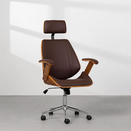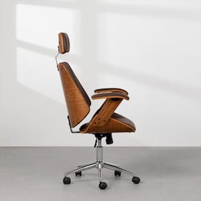 A Cadeira de Escritório Lisboa - Marrom vai fazer toda a diferença no ambiente de trabalho, além de garantir mais conforto para o dia a dia e beleza para o ambiente. Com estrutura em madeira e espuma com revestimento em PU, a peça possui base cromada com sistema relax e rodas que não danificam o piso.