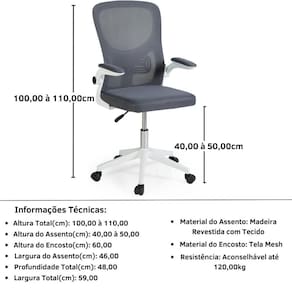 O encosto em tela mesh não apenas adiciona um toque contemporâneo ao design, mas também proporciona uma ventilação eficiente. Isso mantém você fresco e confortável durante todo o dia, enquanto a tela ível se adapta dinamicamente aos contornos do seu corpo.