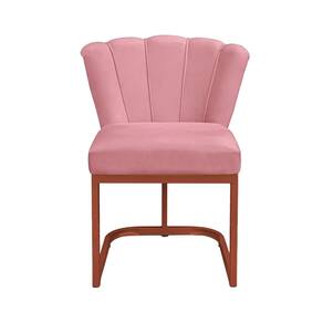 Cadeira de Escritório Pétala Veludo Rosa Base de Ferro Cobre - Vallisa Decor