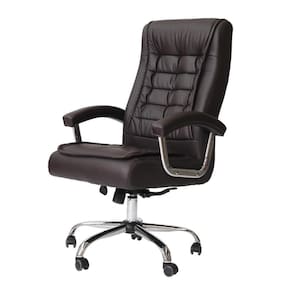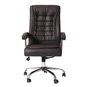 Poltrona Cadeira Para Escritório Com Braço Base Cromada Rodinhas de nylon anti risco resistente confortável e barata tipo poltrona executiva giratória com ajuste de altura Para 150kg Big Monique Molas Enscadas Pillow Top Marrom