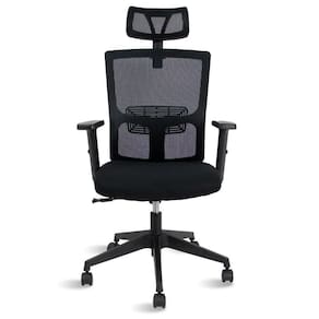 A cadeira de escritório presidente Brandon Healer na cor preta é produzida em estrutura de aço com revestimento em plástico, contraplacado com espuma D26 e revestimento em malha. Com apoios de braços ajustáveis, regulagem de altura, encosto de cabeça, rodas plásticas de 50mm e elevação a gás.
