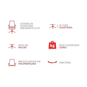 Conteúdo da embalagem: 01 cadeira de escritório Presidente Elite encosto de cabeça ajustável premium
