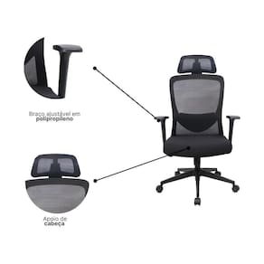 Cadeira de Escritório Presidente Elite Presidencial Tela Mesh Rodízios Giratória com Braços Ajustáveis Preto