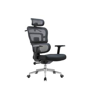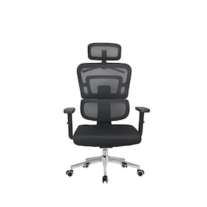 Cadeira Ergonômica. Base giratória cromada de 350mm com rodízios de 360°. Regulagem de altura e amortecimento a gás. Encosto em malha de alta elasticidade. Encosto com ajuste de posição. Apoio com ajuste angular para cabeça e cabide. Apoio para a lombar. Apoio para os braços em polipropileno com ajuste de altura. Sistema relax com travas. Estofamento em espuma de alta densidade. Suporte de no máximo 100kg.