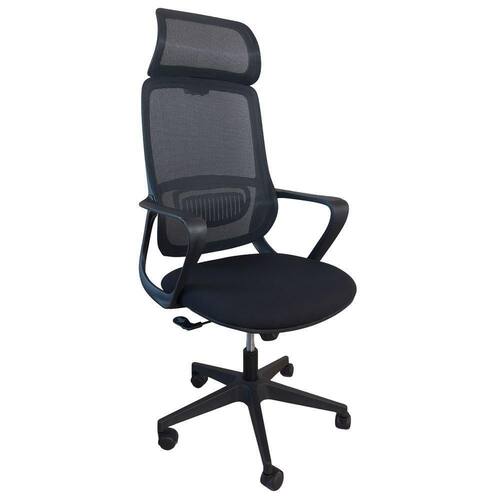 O encosto é revestido em tecido Mesh Premium, composto por 64% de poli elastômero e 36% de poliéster. Já o assento conta com espuma 35D, revestida em tecido 100% poliéster.