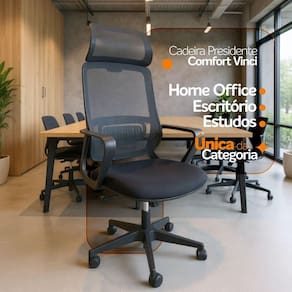 A Cadeira Presidente Comfort Vinci é perfeita para home office, salas de reunião ou escritórios que valorizam funcionalidade, conforto e um visual moderno.
