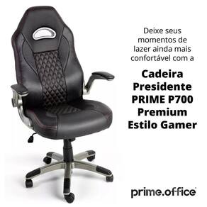 A nossa Cadeira Presidente prime.office P700 Premium Estilo Gamer é mais do que uma cadeira; é um investimento em conforto, produtividade e estilo. Experimente a diferença de ter uma cadeira que se adapta a você. Adquira a sua hoje e eleve o seu espaço de trabalho ou gaming para o próximo nível!
