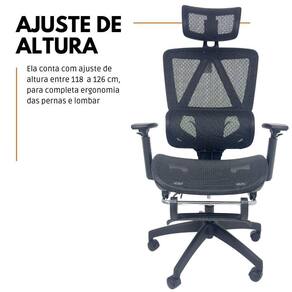 A limpeza pode ser realizada com um pano úmido e detergente neutro, garantindo a preservação do acabamento em Tela Mesh Nylon e a durabilidade da cadeira.
