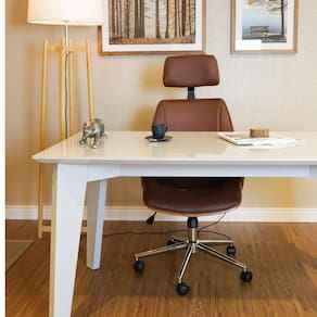 Cadeira office giratória com ajuste de altura e função relax. Estrutura em madeira nogueira compensada, estofada e revestida em Poliuretano. Possui base estrela cromada e rodízios em nylon. Acabamento da Estrutura: Verniz Almofada do assento: Fixa Altura do assento até o chão: 52 cm Ambiente Principal: Escritório Apoio para Braços Estofado: Sim Complexidade da Montagem: Baixa: pode ser montado por uma pessoa sozinha Cor: Marrom Cor do Produto: Marrom Dobrável: Não Enchimento do Assento: Espuma D-28 Enchimento do Encosto: Espuma D-28 Escala de Brilho: Fosco Estrutura do Assento: Madeira compensada - nogueira Estrutura do Encosto: Madeira compensada - nogueira Giratória: Sim Informações Complementares: Cadeira Office Giratória Com Ajuste de Altura (alt Mínima 116cm e Máxima 124cm), Estrutura Em Madeira Nogueira Com Estofamento Revestido Em Poliuretano (pu), Possui Apoio para Braços e Encosto para a Cabeça. Base Cromada Em Formato Estrela Com Rodízios Em Itens Inclusos: 1 Cadeira e Manual de Instruções. Linha ou Coleção: Office Manual de Montagem e Instalação: https://cdn2.madeiramadeira.com.br/atributo/rivatti/855980-manual-office-lisboa.pdf Material da Base: Aço Cromado Necessita Montagem: Sim Origem do Produto: Importado Peso: 15 kg Possui Apoio para Braços: Sim Possui Apoio Para os Pés: Não Possui Rodízio: Sim Recomendações de Uso, Manutenção e Limpeza: Uso interno. Não expor ao sol ou umidade. Não exceder a capacidade de peso. Limpar com pano macio umedecido em solução de água e sabão neutro e secar em seguida. Não utilizar produtos químicos ou abrasivos. Revestimento do Assento: Poliuretano Revestimento do Encosto: Poliuretano Rodízio com Trava: Não Sistema de Montagem: Encaixe e parafusos Suporta Até (kg): 120 kg Tipo de Assento: Regulável Tipo de Encosto: Regulável Tipo de Madeira Maciça: Nogueira