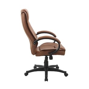 Com design arrojado, possuem a beleza perfeita para ambientes funcionais. Cadeira office revestida em PU, com regulagem de altura com pistão á gás e sistema de relax. Estrutura da base em nylon pintado, com rodízios. Acabamento da Estrutura: Pintura Almofada do assento: Fixa Altura do assento até o chão: 46 cm Ambiente: Escritório Apoio para Braços Estofado: Sim Complexidade da Montagem: Baixa: pode ser montado por uma pessoa sozinha Cor: Marrom Cor: Marrom Enchimento do Assento: Espuma D-24 Enchimento do Encosto: Espuma D-26 Escala de Brilho: Semi-Brilho Estrutura do Assento: Madeira Compensada Estrutura do Encosto: Madeira Compensada Giratória: Sim Itens Inclusos: 1 Cadeira e Manual de Instruções. Linha ou Coleção: Office Material da Base: Nylon Necessita Montagem: Sim Peso: 16,5 kg Possui Apoio para Braços: Sim Possui Rodízio: Sim Recomendações de Uso, Manutenção e Limpeza: Limpar com pano macio umedecido em solução de água e sabão neutro e secar em seguida. Uso interno. Não expor ao sol ou umidade. Não exceder a capacidade de peso. Não utilizar produtos químicos ou abrasivos. Resistente à Chuva: Não Revestimento do Assento: Poliuretano Revestimento do Encosto: Poliuretano Sistema de Montagem: Parafusos Suporta Até (kg): 120 kg Tipo de Assento: Regulável Tipo de Encosto: Fixo
