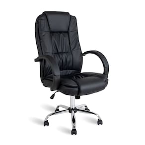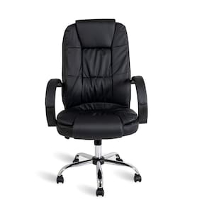 Design Presidente e Acabamento em PU A Cadeira de Escritório Healer Johnson apresenta um perfil executivo do tipo Presidente, destacando-se pelo seu espaldar alto e estrutura imponente. O revestimento é confeccionado inteiramente em material sintético (PU) na cor preta, oferecendo uma superfície lisa e uniforme. Este tipo de acabamento confere ao mobiliário uma estética clássica e sóbria, ideal para compor escritórios e salas de reunião que buscam uma aparência profissional e integrada.