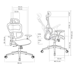 Base de nylon, além de resistente, permite ser facilmente levada de um lugar a outro. Tecido MESH extremamente respirável, por contra se sua trama ser mais aberta. Mecanismo especial multifuncional, reclina até 150º em posições livres, ajuste de profundidade de assento de até 5cm, permitindo maior conforto das pernas.