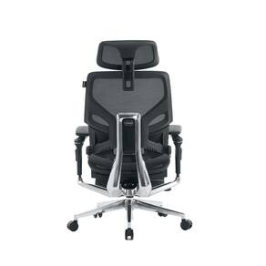 Materiais e funções: - encosto com regulagem de altura em 5 niveis; - apoio de cabeça possui ajuste de altura e ajuste na rotação do ângulo na vertical. - ajuste de altura da cadeira, a inclinação do encosto e a profundidade do assento. - apoio para as pernas; - apoio lombar com abas laterais em tecido com 3 níveis de regulagem e ajustes; - braços 6d: ajuste de altura, rotação, para os lados, para frente e trás, inclinação e rotação em 360 graus; - braços com revestimento em pu macio para maior conforto. - encosto e assento em mesh premium resistente respirável; - reclinável até 140º; - base reforçada em alumínio 350mm; - rodas em silicone silenciosas de 60mm; - pistão classe 4; - sistema relax; - acabamento premium em nylon; - estrutura central de alumínio; - suporta até 130 kilos; - para usuários de até 2m;