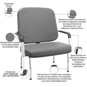 Com um design pensado para o acomodar usuários com sobrepeso, essa cadeira plus size é ideal para escritórios, salas de espera e recepções, oferecendo um acolhimento excepcional. Além disso, é fabricada com uma estrutura de aço carbono resistente e um acabamento epóxi que garante durabilidade e resistência, combinando funcionalidade e elegância. Para completar, o assento amplo e confortável proporciona uma experiência de uso agradável, seja para longas horas de trabalho ou momentos de espera.