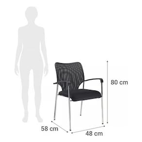 Design Moderno: Estrutura cromada e assento em tela Mesh preto, proporcionando um visual elegante e contemporâneo. Conforto Garantido: Assento em rede que se adapta ao corpo, oferecendo conforto mesmo durante longos períodos de uso. Estrutura Robusta: Suporta até 100 kg, garantindo durabilidade e segurança. Base Fixa: Estável e segura, ideal para salas de espera, recepções e escritórios. Apoio de Braço: Inclui apoios de braço para maior conforto do usuário. Encosto Baixo: Design de encosto baixo que oferece suporte adequado e mantém o visual clean. Sem Rodas: Base fixa sem rodas, ideal para espaços onde a mobilidade não é necessária. Dimensões: