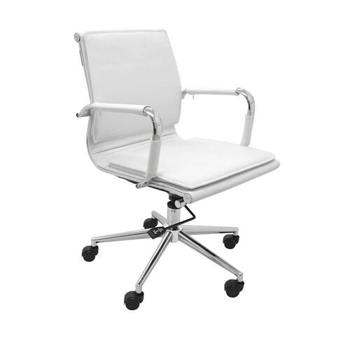 Design contemporâneo que agrega elegância e estilo para o seu dia a dia. Cadeira Office com encosto baixo, estrutura em aço cromado e revestida em PU, possui regulagem de altura do assento com pistão á gás e sistema relax, possui base giratória em aço cromado com rodízios em nylon.