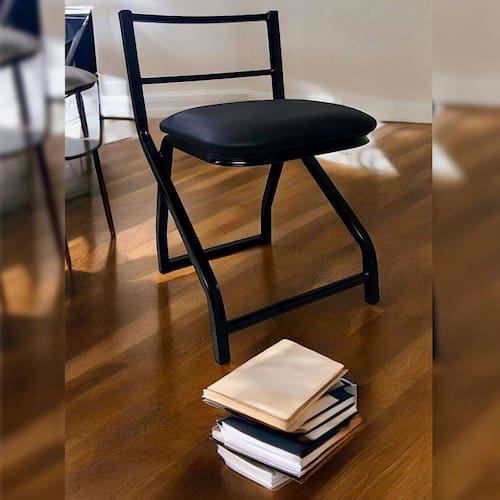 Cadeira de Ferro Estilo Industrial Assento Almofadado Corino Preto