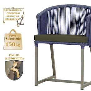 Fotos meramente ilustrativas. Tonalidades podem variar dependendo do monitor. Os objetos que ambientam as Fotos não acompanham o produto. Antes de comprar o seu produto verifique as medidas, o local onde pretende instalar e se necessário contratar o serviço de um profissional qualificado. Produto conhecido como: Cadeira Noronha, Cadeira de alumínio, Corda náutica, Estofado impermeável, Móveis de exterior, Cadeira resistente à água, Design moderno em Cadeira, Cadeira para área externa, Cadeira de jardim, Móveis para varanda, Cadeira durável, Cadeira de alta qualidade, Conforto em Cadeira, Cadeira elegante.