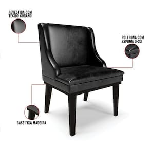 Experimente deixar sua decoração com bom gosto e qualidade com a cadeira de jantar Liz. É perfeita para você não abre mão de qualidade e requinte na hora das refeições e confraternizações com amigos e familiares. Produzida com Base Fixa Madeira Preto que suportam até 120 kg, estrutura ecologicamente correta de madeira de eucalipto e pinus, oferece durabilidade e qualidade ao móvel, seu estofamento é com espuma de densidade D-23, revestido em tecido Corano. Sofisticada e excelente para deixar sua sala de jantar mais aconchegante. Compre sem sair de casa!