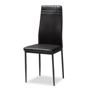 - O design minimalista da cadeira de jantar Matiese ainda o surpreenderá com os detalhes sutis de seu design. A cadeira é o epítome do design moderno e de inspiração contemporânea, com suas linhas retas e silhueta simples. O estofamento preto em couro sintético do Matiese apresenta um design simples e cruzado costurado, adicionando um toque de detalhes inesperados. O acabamento preto nas pernas robustas de metal da cadeira adiciona o toque final a uma aparência geral moderna e simplificada