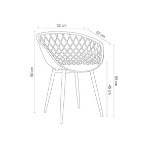 Uma cadeira versátil, perfeita para vários ambientes : desde a mesa de jantar, ao aconchego do quarto. Cadeira com assento em PP, com braços e encosto. Possui base fixa em metal adesivado com textura em madeira.