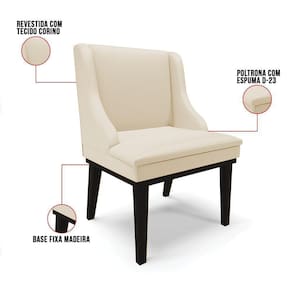 Experimente deixar sua decoração com bom gosto e qualidade com a cadeira de jantar Liz. É perfeita para você não abre mão de qualidade e requinte na hora das refeições e confraternizações com amigos e familiares. Produzida com Base Fixa Madeira Preto que suportam até 120 kg, estrutura ecologicamente correta de madeira de eucalipto e pinus, oferece durabilidade e qualidade ao móvel, seu estofamento é com espuma de densidade D-23, revestido em tecido Corino no tom Bege. Sofisticada e excelente para deixar sua sala de jantar mais aconchegante. Compre sem sair de casa!