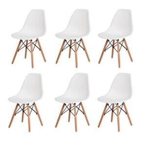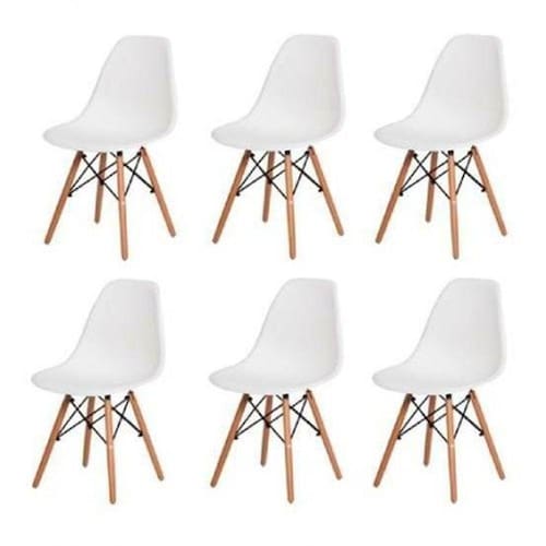 Cadeira De Jantar Decoreshop Charles Eames Dkr Eiffel, Estrutura De Cor Branco, 6 Unidades Cadeira Eiffel Eames Base Madeira A CADEIRA CHARLES EAMES EIFFEL foi criada nos anos 50, é vencedora do Museu de Nova York da concorrência Design de Mobiliário Low-Cost Arte Moderna Internacional. Sua base é em MADEIRA no formato de uma torre faz com que o ambiente não fique sobrecarregado. Adequa-se perfeitamente para compor conjunto de mesa de jantar ou qualquer outro ambiente em sua casa ou escritório. Ideal para receber amigos e familiares com um toque de moda e charme. As pernas da cadeira são em madeira e os fios de aço preto não garantem estabilidade à cadeira.
