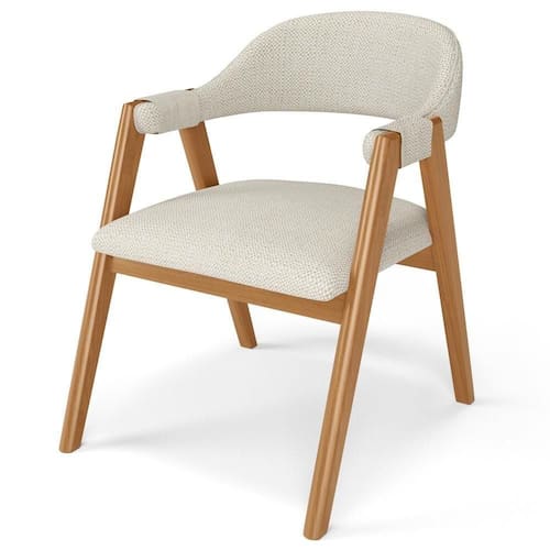 A Cadeira de Jantar e Estar Living Estofada Nadja, das Lyam Decor, é a escolha perfeita para criar uma sala de jantar moderna e acolhedora. Com seu design curvo e pés de madeira maciça envernizada, essa cadeira estofada traz elegância e sofisticação ao ambiente. Além disso, é tapeçada com espuma d-26, o que proporciona um conforto excepcional, permitindo que você desfrute de momentos incríveis à mesa. Já o design orgânico combina beleza e modernidade, tornando-a uma peça única, enquanto os braços adicionam um toque extra de conforto e estilo. A Cadeira Nadja é o equilíbrio perfeito entre funcionalidade e design, uma vez que pode facilmente ser utilizada em diversos ambientes, como espaços comerciais, recepção de hotel e eventos, até como poltrona para sala de estar. Adicione esse elemento indispensável à sua decoração e transforme qualquer ambiente em um lugar especial. Não perca a oportunidade de adquirir essa cadeira de jantar que vai encantar a todos.