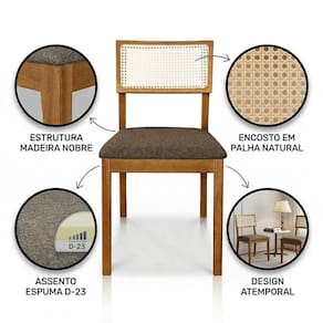 Fabricada com estrutura em madeira nobre de jequitibá cor Mel, a Cadeira Millie oferece resistência e durabilidade excepcionais. Seu assento conta com espuma D-23 garantindo conforto prolongado, enquanto o revestimento em linho adiciona textura, charme e aconchego ao ambiente. O encosto em palha natural se encarrega de dar o toque final a peça.