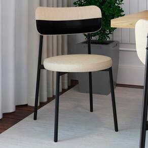 A Cadeira de Jantar Estofada Fixa Nyka M25 Linho Areia/Sintético Preto, da Mpozenato se destaca pela sua combinação de elegância e design moderno, tornando-a uma escolha altamente versátil para diversos ambientes.