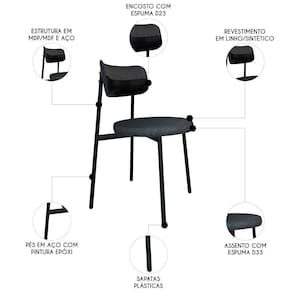 A Cadeira de Jantar Estofada Fixa Nyka M25 Linho Grafite/Sintético Preto, da Mpozenato se destaca pela sua combinação de elegância e design moderno, tornando-a uma escolha altamente versátil para diversos ambientes.