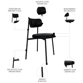 A Cadeira de Jantar Estofada Fixa Nyka M25 Sintético Preto, da Mpozenato se destaca pela sua combinação de elegância e design moderno, tornando-a uma escolha altamente versátil para diversos ambientes.
