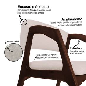 Cadeira de Jantar Estofada Gabriela em Madeira e Mdf Castanho Linho Bege