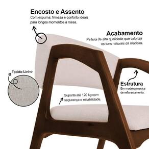 O assento com espuma de alta densidade D26 garante conforto prolongado, enquanto o encosto estofado com espuma D20 proporciona apoio suave e ergonômico. Revestida em tecidos nobres, a cadeira alia maciez e durabilidade, adaptando-se com facilidade a diferentes estilos de decoração.