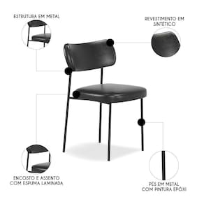 Além de toda a elegância, a Cadeira Estofada oferece conforto e resistência ideais para o dia a dia. Sua estrutura em aço carbono com acabamento em pintura epóxi garante durabilidade e estabilidade, proporcionando uma base segura e duradoura. O assento e encosto, estofados em espuma laminada e revestidos em sintético, tornam cada uso ainda mais agradável, oferecendo um toque suave e convidativo. Esta Cadeira Versátil é perfeita para complementar sua Sala de Jantar, sala de estar ou até mesmo o escritório, adicionando estilo e funcionalidade a qualquer ambiente.