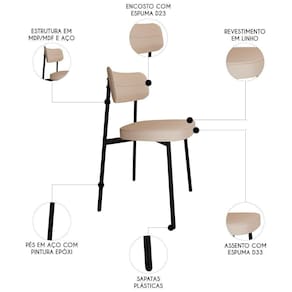 O revestimento em linho de alta qualidade confere um toque de suavidade e sofisticação, enquanto o MDF/MDP no assento e encosto garante resistência e durabilidade ao produto. Projetada para oferecer o suporte necessário, possui assento em espuma D33 e encosto em espuma D23, proporcionando uma experiência ergonômica e confortável. Além de sua funcionalidade, o kit de Cadeiras Estofadas se destaca pelo design moderno e elegante, capaz de se adaptar a diversos ambientes da sua casa. Os pés fixos em aço com pintura epóxi na cor preta trazem estabilidade. Seja no Escritório, na Sala de Jantar ou até mesmo em um canto de leitura, ela se encaixa perfeitamente em qualquer ambiente. Seu encosto curvo não apenas proporciona conforto, mas também transforma o ambiente onde está inserida, conferindo um toque mais moderno aos seus espaços.