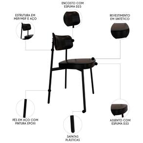 O revestimento em sintético de alta qualidade confere um toque de suavidade e sofisticação, enquanto o MDF/MDP no assento e encosto garante resistência e durabilidade ao produto. Projetada para oferecer o suporte necessário, possui assento em espuma D33 e encosto em espuma D23, proporcionando uma experiência ergonômica e confortável. Além de sua funcionalidade, o kit de Cadeiras Estofadas se destaca pelo design moderno e elegante, capaz de se adaptar a diversos ambientes da sua casa. Os pés fixos em aço com pintura epóxi na cor preta trazem estabilidade. Seja no Escritório, na Sala de Jantar ou até mesmo em um canto de leitura, ela se encaixa perfeitamente em qualquer ambiente. Seu encosto curvo não apenas proporciona conforto, mas também transforma o ambiente onde está inserida, conferindo um toque mais moderno aos seus espaços.