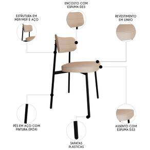 O revestimento em linho de alta qualidade confere um toque de suavidade e sofisticação, enquanto o MDF/MDP no assento e encosto garante resistência e durabilidade ao produto. Projetada para oferecer o suporte necessário, possui assento em espuma D33 e encosto em espuma D23, proporcionando uma experiência ergonômica e confortável. Além de sua funcionalidade, o kit de Cadeiras Estofadas se destaca pelo design moderno e elegante, capaz de se adaptar a diversos ambientes da sua casa. Os pés fixos em aço com pintura epóxi na cor preta trazem estabilidade. Seja no Escritório, na Sala de Jantar ou até mesmo em um canto de leitura, ela se encaixa perfeitamente em qualquer ambiente. Seu encosto curvo não apenas proporciona conforto, mas também transforma o ambiente onde está inserida, conferindo um toque mais moderno aos seus espaços.