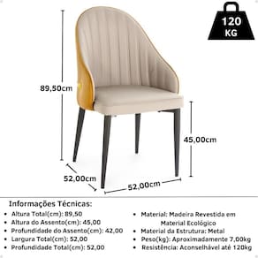 Seu assento e encosto são feitos em madeira e revestidos com material ecológico, materiais resistentes garantia de durabilidade e estabilidade, enquanto seus pés são feitos em metal oferecendo um visual elegante e garantindo um produto robusto e durável.