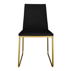 Cadeira de Jantar Estofada Lille Base Gold Veludo Preto - Montanaris Decor