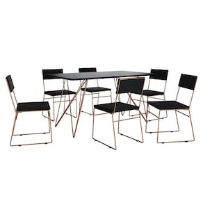 IMAGENS MERAMENTE ILUSTRATIVAS REALIZADO EDIÇÃO, PODENDO HAVER UMA PEQUENA VARIAÇÃO DE COR DEPENDENDO DE CADA TELA OU MONITOR.Cadeira De Jantar Estofada MÃlaga Base Cobre Veludo Preto