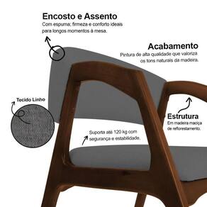 AS IMAGENS SÃO MERAMENTE ILUSTRATIVAS E PODEM SOFRER VARIAÇÕES DE COR E PEQUENOS DETALHES DE ACORDO COM O SEU MONITOR, ILUMINAÇÃO DO AMBIENTE E ATÉ MESMO A SUA PERCEPÇÃO VISUAL.Cadeira de Jantar Gabriela em Madeira e Mdf Mel Linho Cinza Grafite